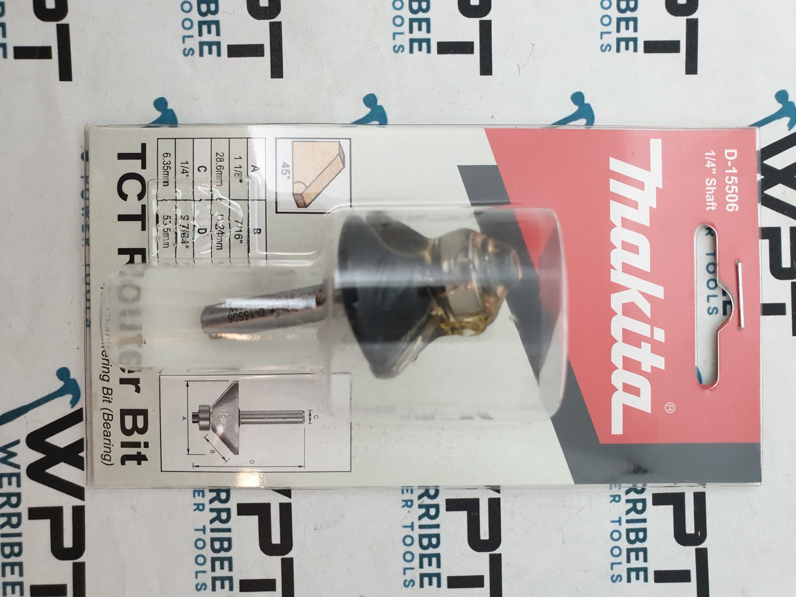 Makita 45DEG Chamfering TCT Router Bit 1/4″ with Bearing D-15506
